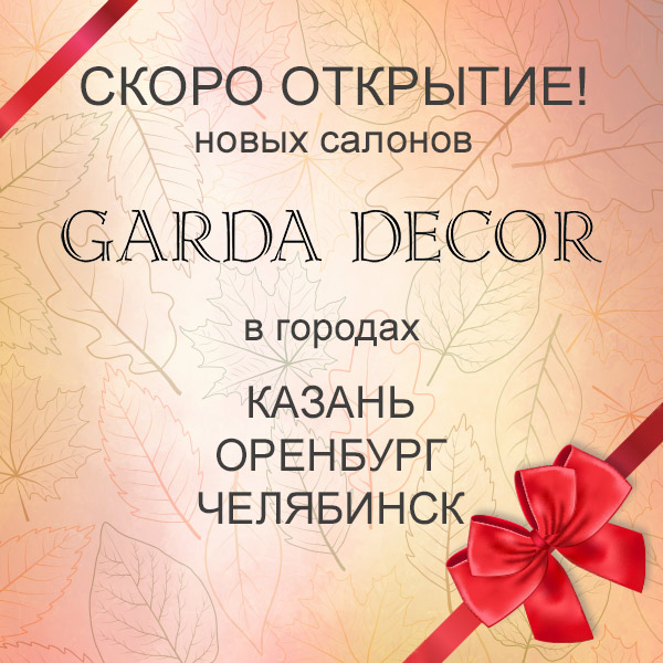 Осень щедрая пора. Этой осенью открываются 3 новых фирменных салона Garda Decor в 3-х городах: Казань, Оренбург и Челябинск. Это значит, что украсить ваш домашний интерьер стало еще удобнее!
